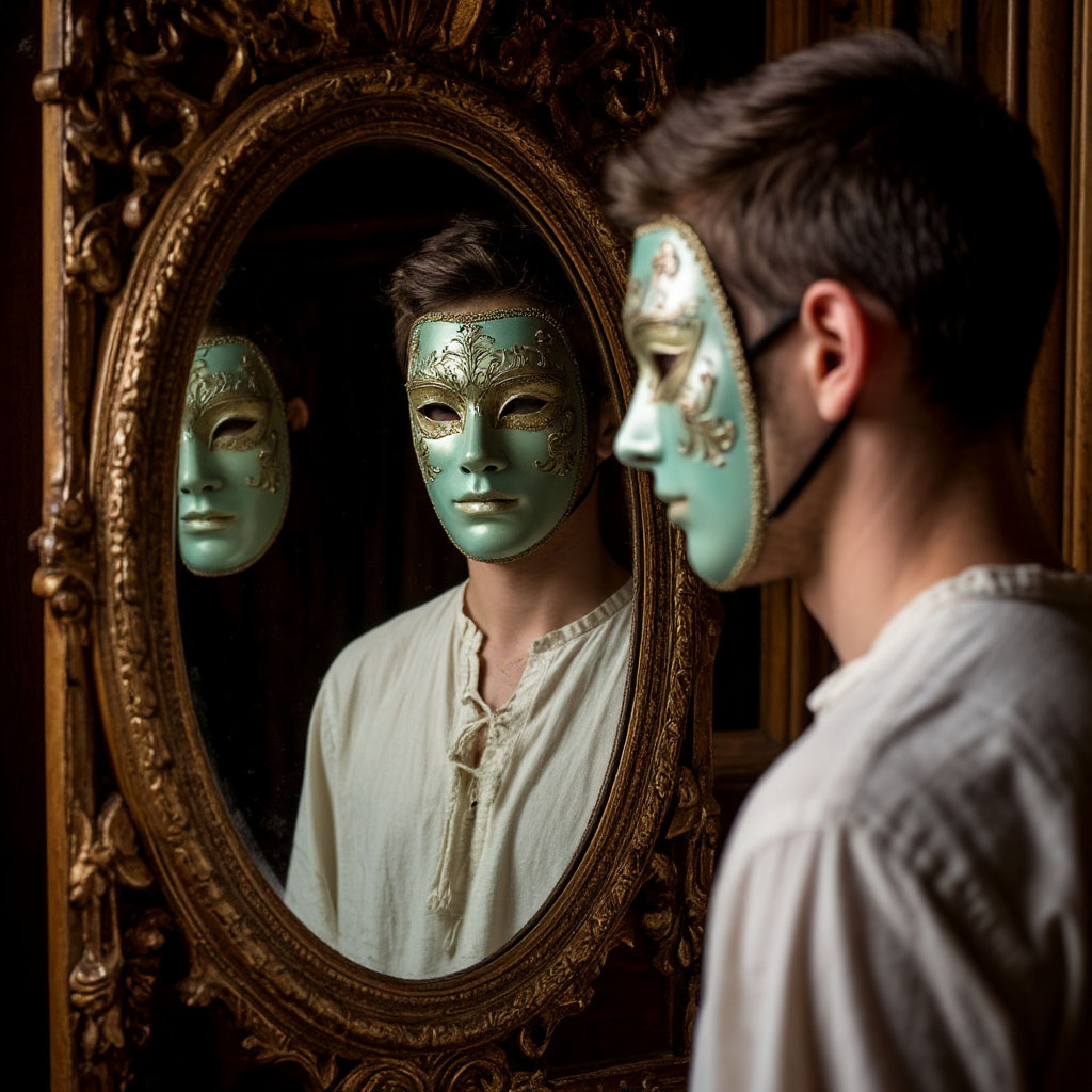 В свои тридцать с небольшим Алексей был тем, кого принято называть «успешным человеком». У него была хорошая работа, дорогой костюм и усталость в глазах, которую не могли скрыть даже самые модные очки. Каждое утро он проделывал один и тот же ритуал. Стоя перед зеркалом, он надевал их — Маски. Это не было магией или метафорой. Он буквально чувствовал, как на его лицо ложатся невидимые, но ощутимые слои. Сначала — Маска Ответственного Сотрудника. Холодная, гладкая, с нарисованной уверенной улыбкой. Она прятала его ночные сомнения и страх перед новыми проектами. Поверх — Маска Опоры для Родителей. Теплая, но тяжелая, словно из стеганого одеяла. Она скрывала его желание сбежать от их ожиданий и просто побыть сыном, а не добытчиком. Следом — Маска Веселого Друга. Яркая, чуть кричащая. Она заглушала его потребность в тишине и одиночестве, заставляя смеяться в барах, когда душа просила пледа и чая. К вечеру наслоение масок становилось невыносимым. Его собственное лицо под ними немело. Он прих