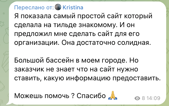 Да, вот так просто Берете свои первые работы с курса "Технический специалист онлайн-школ", упаковываете в портфолио и клиенты уже готовы с вами работать! В онлайне нет смысла гадать "а когда же отобьются мои вложения..." Вы либо учитесь и работаете, радуясь новым успехам Либо в очередной раз выбираете оставить все как есть 🤷🏻♀️ 🪄Нет каких-то точных цифр, что ровно через 30 дней после старта какого-либо курса вам на карточку упадет 100.000руб 💪 Есть лишь ваш труд и желание все поменять, как например у Кристины Она взяла первого клиента спустя пару недель после старата курса и получит не только опыт, но и всю нашу поддержку и помощь в работе Кстати таких кейсов у нас за годы работы уже много собралось, отзывами учеников щедро делимся в канале * клик * Там все честно и от лично от них В среднем вполне реально выйти в первый месяц на 20-30тысяч, взяв просто один проект как техспец А дальше только вперед, одновременно можно вести 2-3 проекта спокойно 😉 В среду стартует новый по