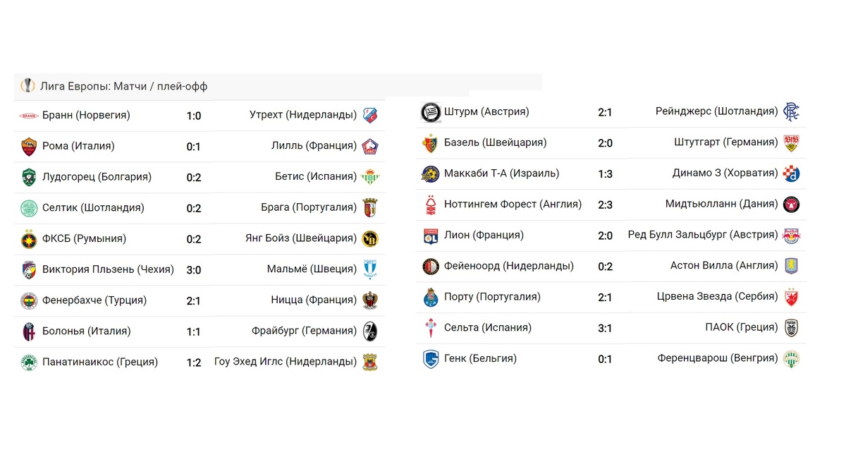 Лига Европы. Результаты 2 тура. Бонус: Лига Конференций 2025
