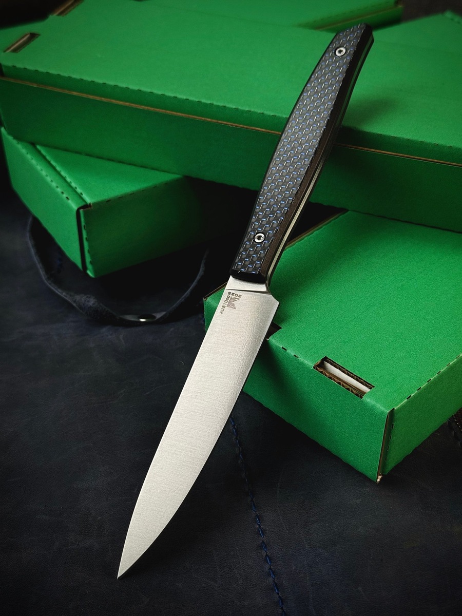 Сделал много бюджетных "Семечек". Один из вариантов выполнен с G10 под карбон. На клинке AUS10Co. Ножны из кайдекса в комплекте. Это небольшой кухонный нож, который станет самым ходовым на вашей кухне. Общая длина: 212 мм Длина клинка: 105 мм Обух: 2.5 мм. ‼️Вести диалог только с @burlax1