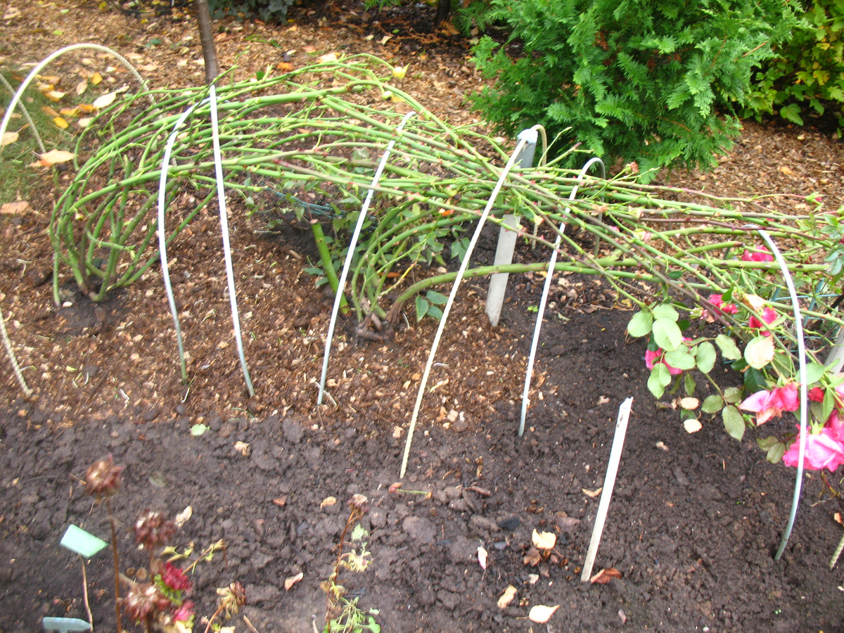Не знаю, как у вас, ау нас в октябре розы еще цветут вовсю, и активно готовить их к зиме пока рано. Я еще даже не обрабатывала их железным купоросом, а только убрала нижние листья таким образом, чтобы "ножки" роз снизу были оголены примерно на 10-15 см. Рыхлить розы я перестала примерно в середине сентября, и удобрения не вносила. А вот вопрос с обрезкой остается открытым. Существует два способа укрывать розы - при первом побеги обрезают на высоту укрытия (т.е. примерно на 2/3), при втором - побеги пригибают и фиксируют, а дуги устанавливают на такой высоте,как вам удобно. Оба способа имеют свои плюсы и минусы, но я обычно розы все-таки обрезаю. Главное - помнить, что обрезка стимулирует активное появление новых побегов, так что проводить ее нужно тогда, когда температура уже достаточно понизится. Сейчас после срезки цветов кусты выпускают огромное количество молодых побегов, которые вряд ли успеют вызреть к ноябрю. Впрочем, очень в этом году у нас очень теплая, даже море еще 22 граду