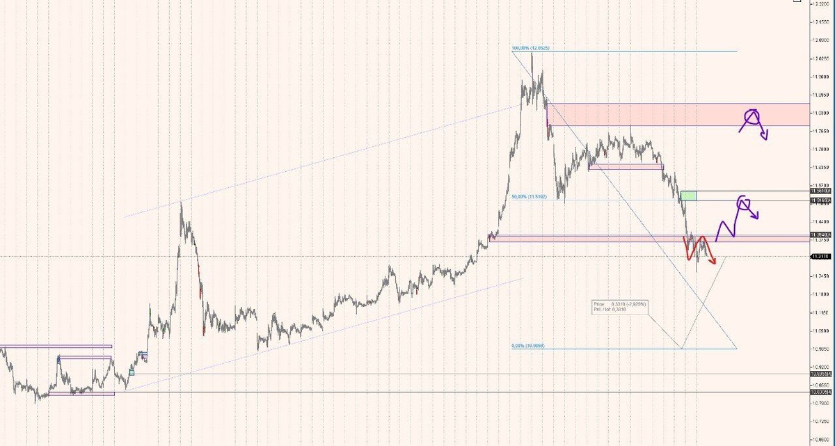 🔥 График Юань Спот — мои действия 📊 На днях мы пришли в тест того уровня, который я так долго ждал, и я сформировал существенную позицию в опционах Call. Сейчас она приносит убыток, но есть и хорошая новость: убыток ограничен, и у меня есть время до декабря, чтобы с этим что-то сделать. 📉 Что можно сделать: На графике мы пошли по красной траектории — продавили тест усилия, провели обратный тест. По правилам именно там следовало бы закрыть позицию или перевести её в нейтраль. Сформирована модель с целью примерно на 3% ниже. Ниже остаются усилия без теста, и они также могут стать целями. Я планирую использовать их для набора дополнительной позиции. Параллельно буду локально отрабатывать усилия по Си. 📈 Есть также шанс пойти на обратный тест поглощённого усилия покупателя — это будет тест точки вращения (синяя траектория). Хорошее место для хеджа. Примерно в той же зоне находится уровень теста усилия продаж по Си (чуть выше 85 300). Не ИИР