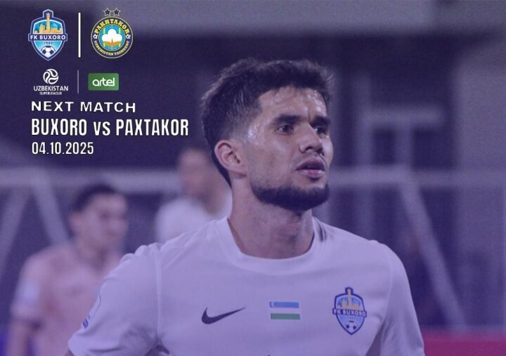 Пресс-служба футбольного клуба "Бухара" сообщает, что в рамках 25-го тура Суперлиги Узбекистана состоится матч между "Бухарой" и ташкентским клубом "Пахтакор". Игра пройдет 4 октября текущего года на стадионе "Бухарская футбольная академия" в городе Бухара.