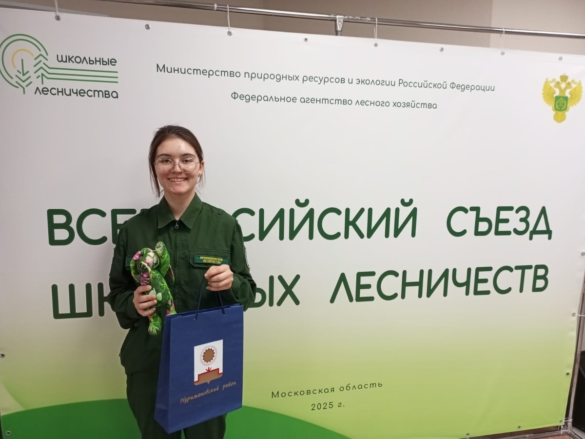 Воспитанница кружка "Лесное дело" школьного лесничества имени Абдулова, Слюсарева Мария при МБУ ДО ДПиШ муниципального района Нуримановский район представляет Республику Башкортостан на VIII Всероссийском съезде школьных лесничеств. Событие собрало в подмосковном Пушкине около 300 участников — руководителей и воспитанников школьных лесничеств из 60 регионов России. С 29 сентября по 3 октября юные экологи будут демонстрировать свои знания и навыки в решении практических задач по ключевым направлениям лесного хозяйства: лесоустройству, лесовосстановлению, охране и защите лесов. В рамках Съезда, было организовано мероприятие, посвященное участникам СВО.