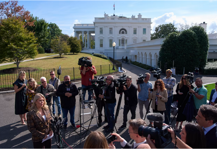 на вопросы на брифинге в среду, а Ливитт заглянула к журналистам на