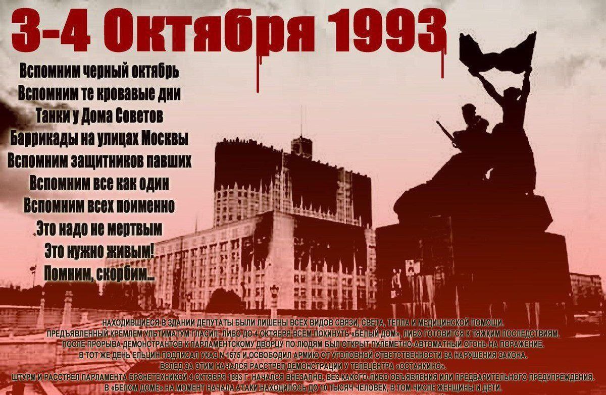 Прошло 32 года со дня восстания в Москве 3-4 октября 1993 года, когда народ поднялся на защиту Верховного Совета и Советской власти