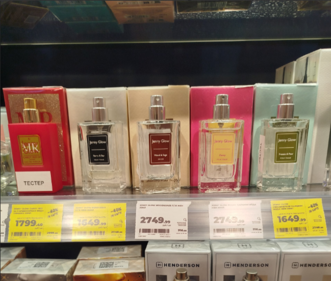 Магазин Магнит Косметик в последнее время стал радовать нас новинками. Вот и в этот раз, зайдя туда, я увидела новинку- парфюмерию бренда Jenny Glow, который повторяет люксовые и нишевые ароматы, да и стоит не совсем дешево - без скидок почти 3 тысячи рублей.