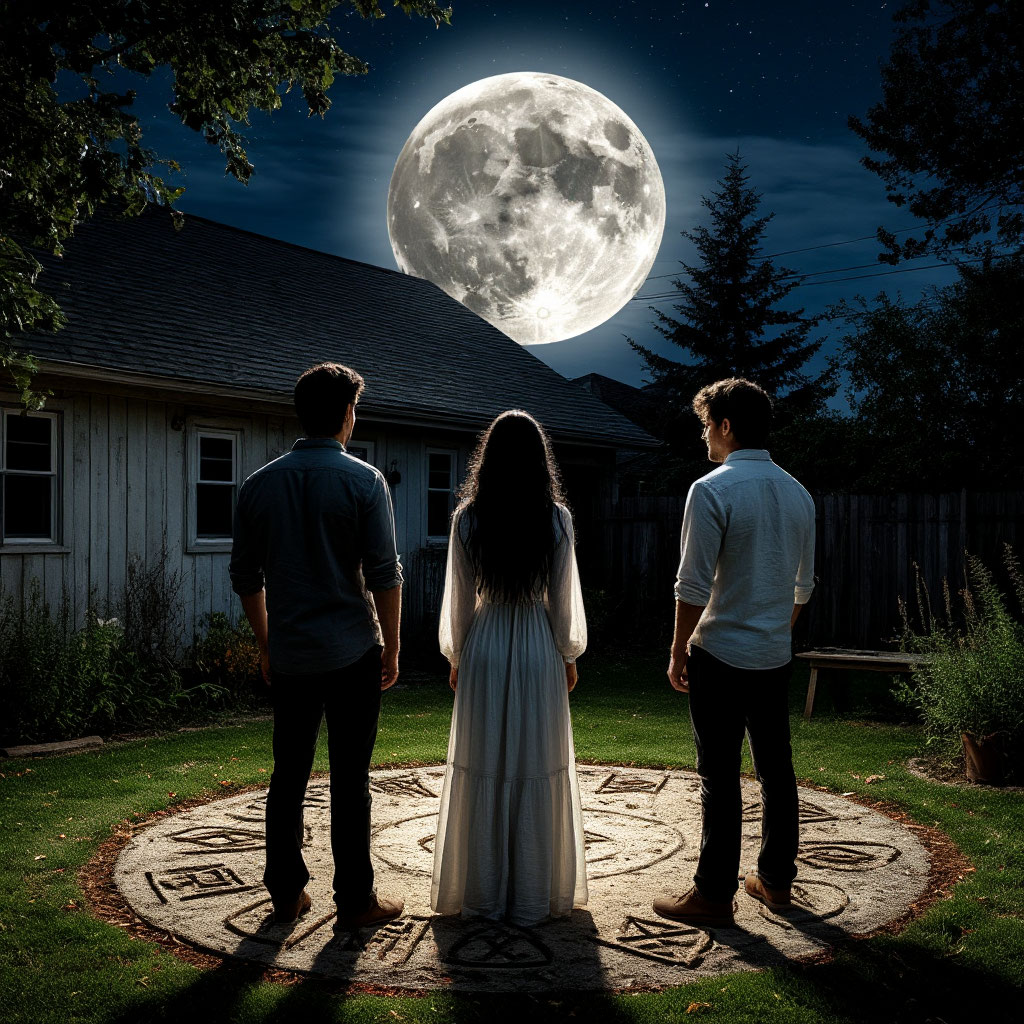 Луна зависла прямо над крышей, полная и тревожная. Ее свет был резким, почти ослепительным, но вокруг — тишина. Никто не спал. Злата сидела внизу, нервно крутя ложку в чашке с остывшим кофе. Ее пальцы мелко дрожали, и от этого звук металла о чашку сводил с ума. Роман молча наблюдал, сидя у окна. Адам проверял оружие. Каждый - на своем месте. Только Евы не было. Она готовила ритуал. Адам удостоверился, что пистолет не подведет, и встал. Без слов двинулся к выходу. Роман глянул на Злату, она — на него. Молча вскочили и пошли следом. Они вышли на улицу, прошли мимо крыльца, и направились туда, где тускло светился огонек. Через минуту все трое уже стояли под ночным небом, на заднем дворе. В кругу из пепла, сухих трав и символов, выложенных солью и обломками янтаря, ждала Ева. Ее волосы были распущены и растрепаны ветром. Соблазнительное платье она сменила на что-то вроде старинной туники -тонкую рубашку из грубого полотна, перешитую собственноручно. На шее - амулет, одолженный из запасов Софии. В руках-миска с отваром, дымившимся густо, будто дым. Роман сел напротив Евы. По ее указанию он не должен был двигаться, только дышать ровно. Под его ладонями была разлита травяная смесь, смешанная с собственной кровью.
