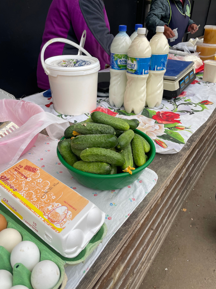 Здесь всегда можно взять творог, яйца и масло — настоящие, «настоящего вкуса». Цены радуют, а качество — ещё больше. Сегодня купила полтора килограмма нежного творога, небольшой контейнер топлёного масла и стакан янтарной облепихи — словно солнечные бусинки в ладонях.