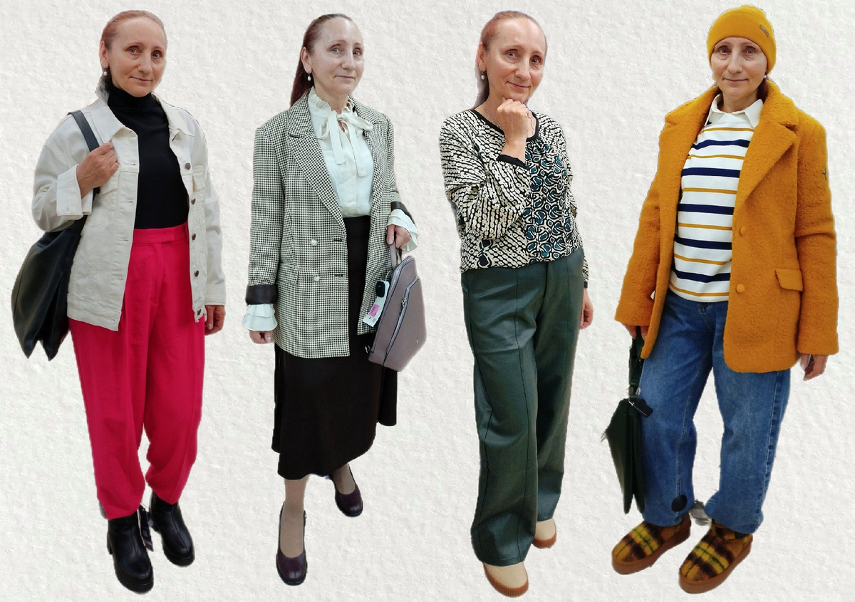 Именно так! В сети часто мелькают стильные итальянские пенсионерки. «А наши-то чем хуже?», - подумала я и позвала знакомую возраста 60+ в популярный универмаг низких цен примерить стильные образы. Вот что из этого вышло. Моей героине москвичке Галине 63 года. По классификации Всемирной организации здравоохранения после 60-63 лет начинается пожилой возраст, и, кстати, встретились мы как раз 1 октября - в Международный день пожилых людей. Но посмотрите на Галину! Разве можно эту стройную симпатичную даму пожилой назвать? Тем не менее, 8 лет назад она ушла с оборонного предприятия на заслуженный отдых. Сейчас большую часть времени с удовольствием проводит с внуками. На встречу со мной в универмаг «Familia» Галина пришла в красно-оранжевом. «Цвета, значит, не боимся, - подумала я, - и готова к любым экспериментам по формуле «красота и стиль». Отлично, приступаем. В первом же образе решила добавить лёгкий оверсайз. Зелёные брюки из экокожи, блузка с принтом. На плечи - бежевый джемпер к