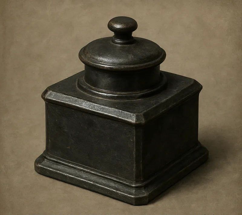 И тут ее взгляд упал на землю у подножия камня. Кто-то недавно раскапывал это место. Яма была небольшой, глубина чуть ниже колена, и на дне ее, в грязи, лежал небольшой металлический предмет. Лена, поборов отвращение, спустилась в яму и подняла его. Это была старинная чернильница, сделанная из темного, почти черного металла, с тяжелой, плотно прилегающей крышкой. На крышке был выгравирован тот же странный символ, что она видела на костяном замке папки Бессонова — не то глаз, не то спираль, уходящая в никуда.