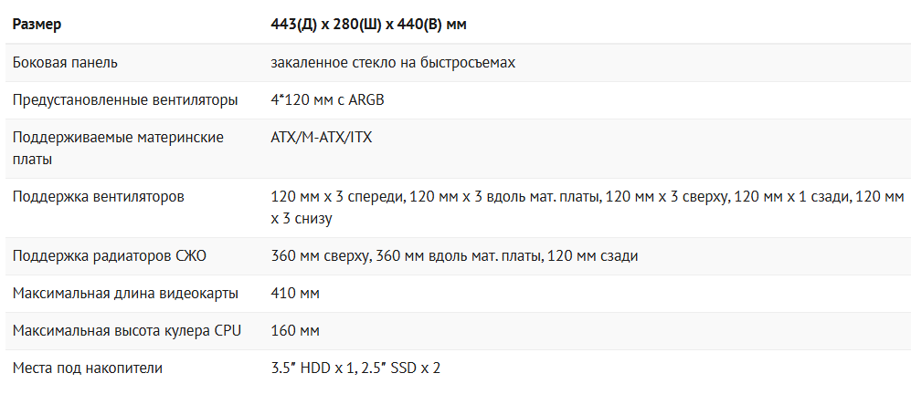 Также хочется отметить, что несмотря на весьма внушительную ширину корпуса, высота доступных для установки воздушных кулеров ограничена 160 мм, и это не очень много. Некоторые массивные модели могут не вписаться в этот лимит и складывается ощущение, что предпочтение тут отдается именно в пользу использования жидкостных AIO систем.