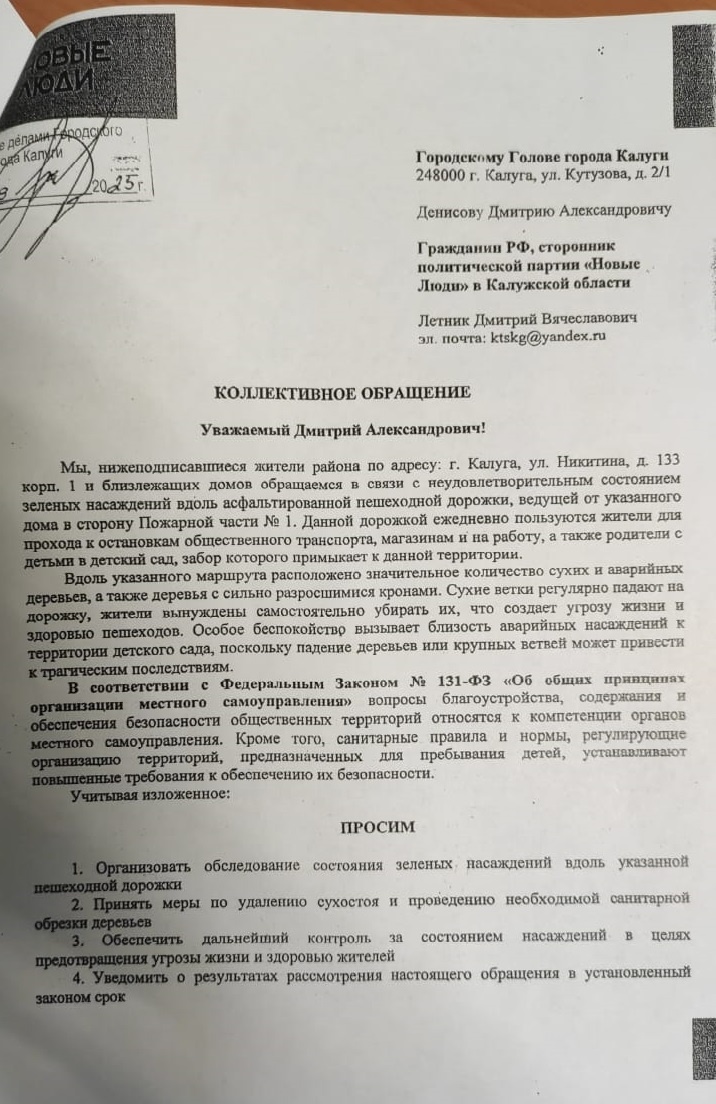 До чего невнимательно надо умудрится писать отписки (ой опечатка - хотел написать ответы) на обращения жителей Калужан, что эти жители начинают просить Главу Города провести обучение сотрудников? 4 сентября я написал просьбу опилить аварийные деревья угрожающие травмами детям в детском саду и жителям идущим по тротуару вдоль забора садика. 9 сентября послали комиссию из числа отдела благоустройства комитета по благоустройству (аж три человека, начальник, ведущий специалист и старший инспектор). Эта комиссия на всякий случай обследовала и соседние участки, и приняла решение на одном из них тоже спилить (только назвали это СНЕСТИ) деревья, но почему-то за счет жителей ближайшей девятиэтажки. И сообщили мне об этом аж 30 сентября… Неужели двадцать дней придумывали чем это обосновать? И не нашли ничего лучше, чем указать п. 3.3 Правил благоустройства города Калуги. Но ведь я тоже их читал! Неужели вы подумали что я читать не умею? Ведь следующий пункт - п. 3.4 утверждает что за счет жител