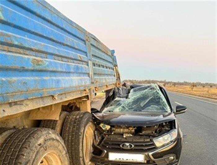 Под Самарой пенсионер на Lada Granta въехал под КамАЗ, пострадала женщина