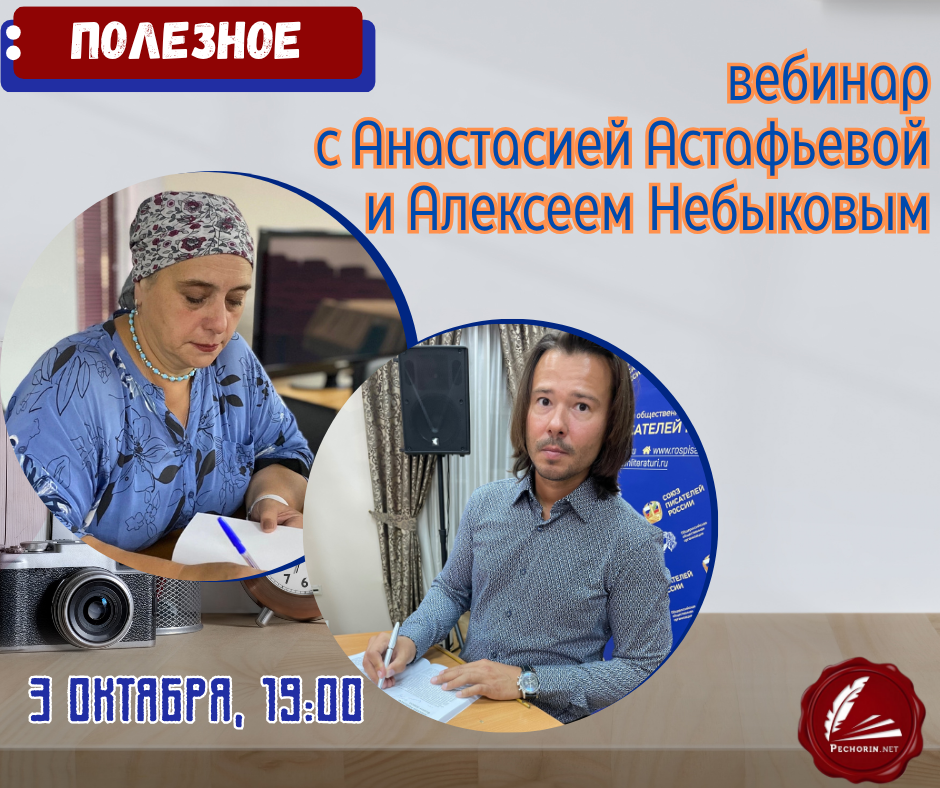 Друзья, перекличка! 🙌 Кто сегодня присоединяется к открытому вебинару Анастасии Астафьевой и Алексея Небыкова? Надеемся, вы не забыли про этот полезный семинар и уже получили ссылку на него. Если же вы до сих пор этого не сделали, пишите нам на почту info@pechorin.net, и мы вышлем вам приглашение. В теме письма следует написать «вебинар Астафьевой», а в самом письме — своё имя и фамилию. На повестке дня — ваше литературное мастерство. Расскажем о творческой мастерской по прозе «ГЛАГОЛЬ» и способах продвижения ваших книг. Начинаем сегодня в 19:00. Для всех зарегистрировавшихся будет доступна запись. 🔻Подробности. ————————— Анастасия Астафьева — писатель, литературный редактор. Член редколлегии литературного журнала «День и ночь». Один из лидеров движения «Новая волна деревенской прозы». Лауреат специальной премии Всероссийского литературного конкурса «Чистая книга» имени Фёдора Абрамова и финалист Литературной премии «Ясная Поляна» (2022). Обладатель Золотого диплома XIV Международн