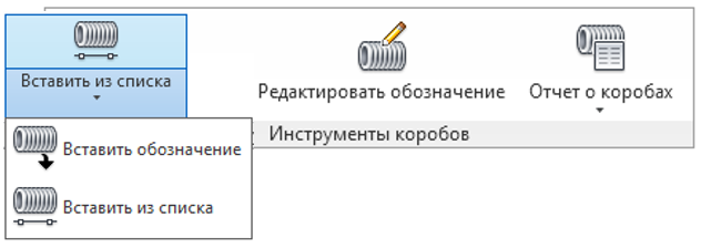 На панели «Инструменты коробов» вкладки «Монтажная панель» ленты запускаем Вставить обозначение.