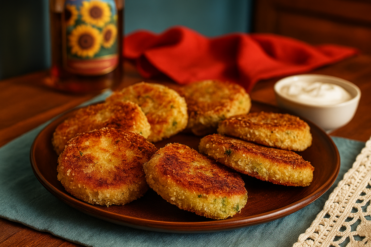 Здравствуйте, мои дорогие гурманы! Речь пойдёт о картофельных котлетах. С хрустящей золотистой корочкой и щедро сдобренные зеленью и чесноком. Берем: Делаем: 1. Помойте картофель, очистите от кожуры. Варим мы его целиком. Заливаем холодной подсоленной водой так, чтобы она полностью покрывала клубни. Ставим на средний огонь, доводим до кипения и варим до полной мягкости. Проверяем вилкой, она должна входить в картофель абсолютно свободно, без малейшего сопротивления. Сливаем воду. И даём картофелю постоять в кастрюле минут 5-7, чтобы он слегка остыл. Теперь тщательно разминаем его в пюре. 2. Мелко нарезаем луковицу. Разогреваем сковороду, наливаем 1-2 столовые ложки масла и обжариваем лук на среднем огне до появления лёгкой золотистой каймы. Готовый лук отправляем к картофельному пюре. 3. Очищаем чеснок. Мелко рубим его ножом или пропускаем через пресс. Следом мелко шинкуем зелень. 4. В миску с тёплым пюре, куда уже отправился лук, выкладываем чеснок, зелень, соль и перец. Всё тщательно