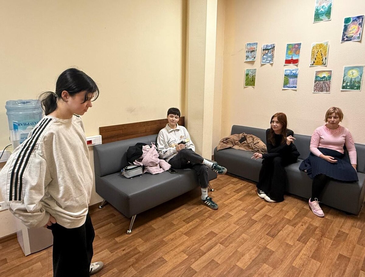 В филиале «Тёплый Стан» прошла тёплая встреча курса «Давайте понимать друг друга с полуслова». На этот раз собралась чудесная женская компания - атмосфера сразу наполнилась улыбками. Подростки пробовали разные, необычные способы приветствия — сначала это было непросто, но вместе они нашли варианты, которые понравились всем. Особенно ярким моментом стало упражнение «проводник»: девочки работали в парах, поочерёдно становясь «проводником» для напарницы с закрытыми глазами. Это было не только весело, но и ответственно — настоящий тренинг на доверие и внимание. Курс занятий, проходящий в центре, учит доверию себе и другим, развивает эмоциональное состояние подростков, дают опыт командной работы и поддержки. Такие встречи помогают подросткам не только раскрываться, но и учиться слышать друг друга, укреплять дружбу и строить отношения, основанные на уважении и тепле.