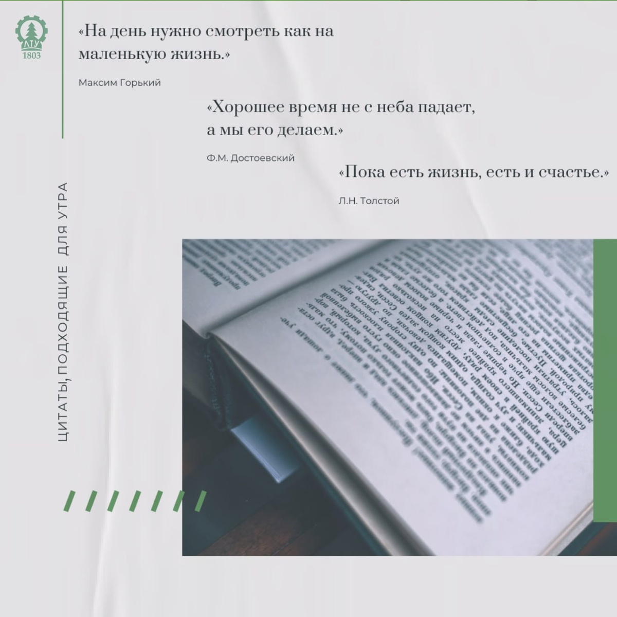 🤩🔡🤩🤩🤩🤩 🤩🤩🤩🔡 📖 Книга может стать отличным спутником любого утра, даря мысли и вдохновение. Читали ли вы когда-нибудь такую историю, которая оставила след в вашем сердце и помогла встретить новый день легче и приятнее? Предлагаем вашему вниманию подборку цитат великих русских писателей, идеально подходящих для доброго утра: 🍡"На день нужно смотреть как на маленькую жизнь." - Максим Горький 🍡"Хорошее время не с неба падает, а мы его делаем." - Ф.М. Достоевский 🍡 "Пока есть жизнь, есть и счастье." - Л.Н. Толстой 📖 Присоединяйтесь к обсуждению и расскажите о вашей любимой цитате, способной придать силы и поднять настроение даже в самую хмурую погоду?