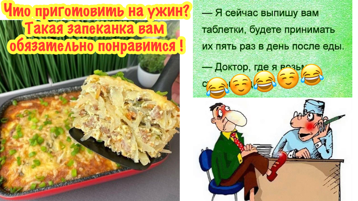 ✔️ Не заводите женщину, если водить не умеете! ✔️«Хмели» — сумели, и ты сможешь! ✔️– А давай закажем что-нибудь для гостей! – Такси, например?… /юмор для хорошего настроения/ И снова у меня для вас простой, бюджетный рецепт уютного, домашнего ужина. Если вы уже не знаете, как ещё разнообразить свой обеденный стол, обратите внимание на этот рецепт! 🔥Конечно же, в конце статьи ⤵️⤵️⤵️ будет и «минутка юмора», которая сделает эту статью не только нужной но и интересной. Ингредиенты (на форму 20 × 20 см): - Капуста белокочанная — 500 г (тонко нашинковать) - Фарш говяжий — 200 г - Яйца — 2 шт. - Сметана — 5–6 ст. л. - Лук репчатый — 1 шт. (мелко нарезать) - Морковь — 1 шт. (натереть на крупной терке) - Сыр твёрдый — 30–50 г (натереть) - Зелень (укроп/петрушка) — небольшой пучок - Соль, перец, специи — по вкусу - Масло растительное — 1 ст. л. (для жарки) 1. Подготовка капусты: Капусту заливаем кипятком на 10–15 минут, затем сливаем воду. 2. Зажарка: На разогретой сковороде обжариваем фарш,
