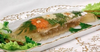 Заливные блюда мы готовим по традиции,в основном, к праздничному столу, многие отдают предпочтение заливной рыбе. А что может быть вкуснее и красивее в прозрачном желе, например, кусочков отварного мяса или языка..! Самое вкусное и аппетитное заливное получается из рыбы ценных пород, однако годится для него любая некостистая рыба. Заливную рыбу можно готовить и из рыбного филе, в этом случае , нам не обойтись без желатина. Некоторые сорта рыб, такие как, судак, дают крепкий желирующий отвар. Крепкий рыбный бульон получается, когда рыбу варят с плавниками, головами и даже с чешуей ( ее помещают в марлевый мешочек). Количество добавляемого желатина напрямую зависит от крепости бульона: на 1 стакан бульона из судака, сваренного с головой и кожей, достаточно 1-2 гр желатина ( в чайной ложке -5 грамм желатина) На желатине можно приготовить заливное из любого продукта: мясо, рыбу, молочные, также овощи и фрукты. Желатин замачивают в холодной кипяченой воде , в среднем ,пропорция 1:5 ( 1 час