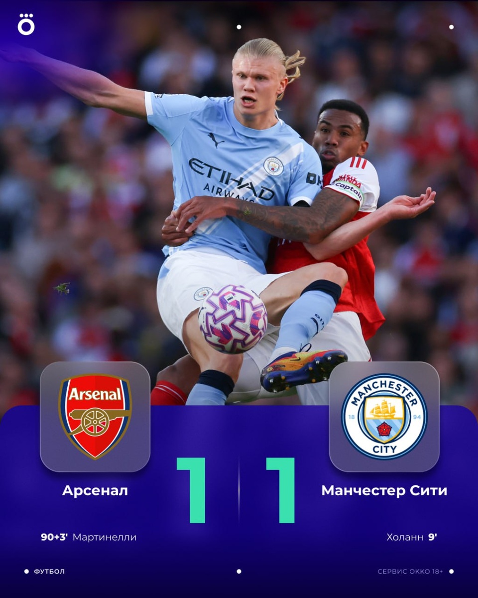 «Арсенал» вырвал ничью с «Сити» в добавленное время 💪