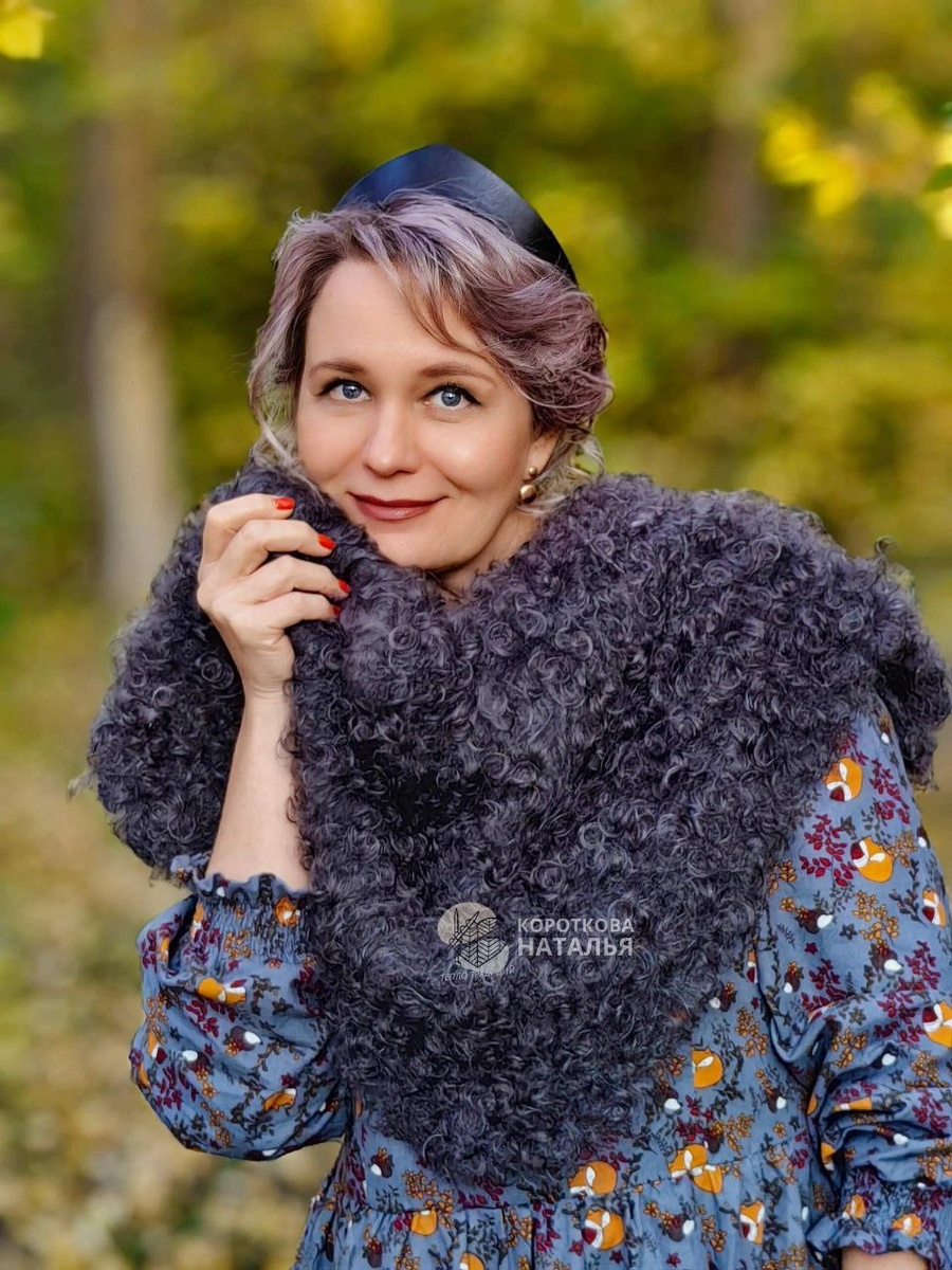 Косынка - бактус "Маменька " , из отборнейшего пуха , очень - очень ласковая , шелковистая , мягкая - премягкая с идеальной работой , очень красивым стальным цветом . Такую косынку удобно носить вместо шапки повязав как бондану или уложив как чалму , а если носить ее на шее или плечах в виде бактуса , то она прекрасно справится с ролью свитера , шарфа или манишки, согреет грудь и горло , уберегая тем самым от ветра , холода и простуды . Косыночка настолько шелковистая , что подойдет даже маленьким деткам , ее можно уложить под курточку и сухое тепло пуха убережет ребенка от сквозняков и болезней , при этом малышу будет легко и ничего не станет сковывать его движения .