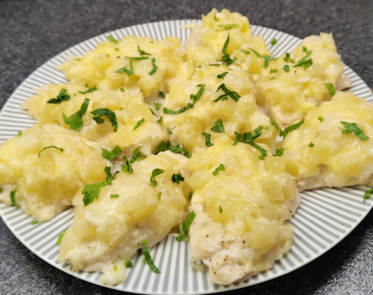 Быстро и вкусно,для тех кто любит сочетание мяса и фруктов, можно приготовить ужин из куриного филе и ананасов .