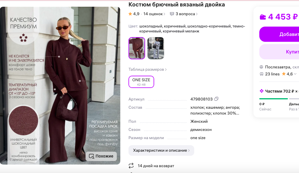 А теперь представьте: утро, вы стоите у шкафа и вдруг вспоминаете про свой любимый вязаный костюм. Тот самый — в благородном коричневом меланже. Уже несколько сезонов безоговорочный фаворит: о нём говорят стилисты, его носят на улицах мегаполиса… и это неудивительно! Ведь этот комплект — идеальное сочетание уюта, стиля и актуальности.