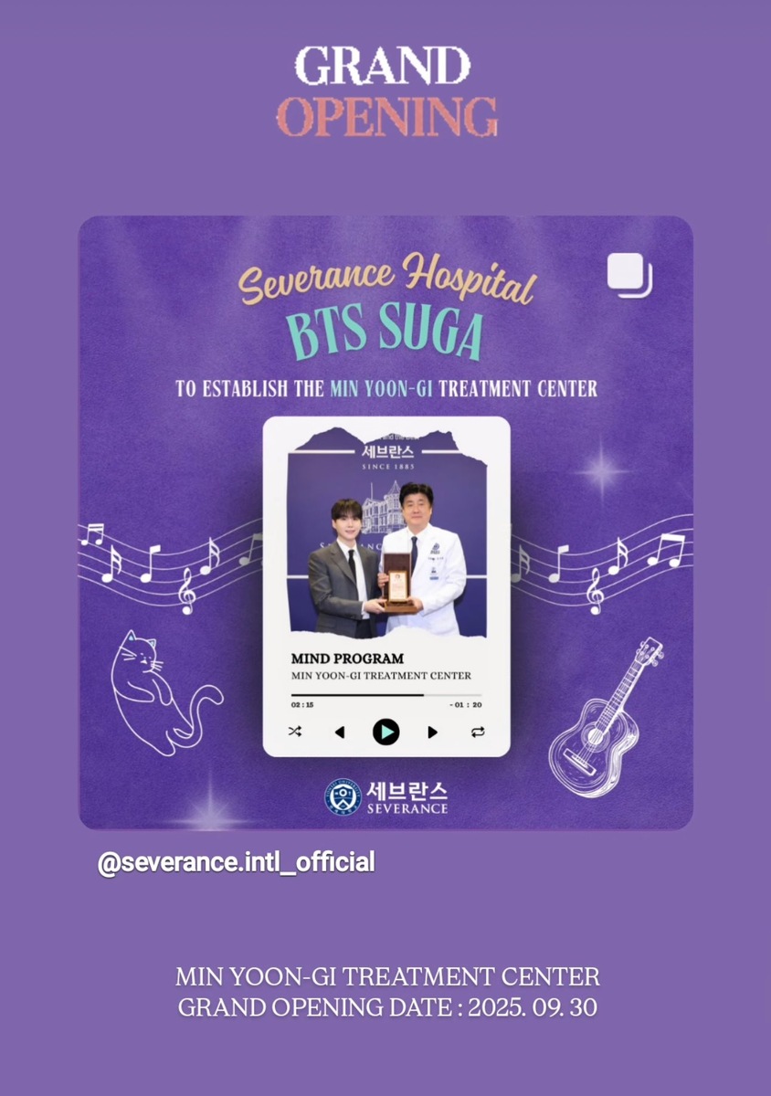 🍊 Больница Северанс объявила об официальном торжественном открытии Центра лечения имени Мин Юнги 30 сентября