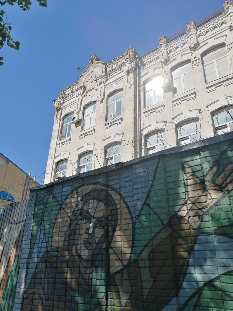 Вчера был день города, но стояла пасмурная погода, мы погуляли вокруг дома, а то вдруг дождь ливанет. Зато сегодня с утра светило солнышко! Как следует навалявшись в постели мы отправились погулять по городу. Обычно мы доезжаем на автобусе до любого проспекта, который пересекает Большую Садовую. Сегодня вышли на Красноармейской-Соколова⬇️ Каждый раз выходя здесь, я задаюсь вопросом, почему такое красивое здание не отреставрировали? Спрятали за каким-то странным забором с колючей проволокой. Кажется сейчас это городские казармы. Дальше мы свернули на проспект Соколова. Это небольшой, но очень уютный и красивый проспект. Здесь множество кофеен и ресторанов, буквально на каждом шагу. Сразу на перекрёстке я встречаю магазин, который принадлежит ставропольской компании, где я проработала несколько лет менеджером по закупке тканей ⬇️ А дальше начинается красота из старинных и не очень домов⬇️ Как только попадаем в город, нам сразу хочется что-нибудь поесть. В этот раз снова потяну