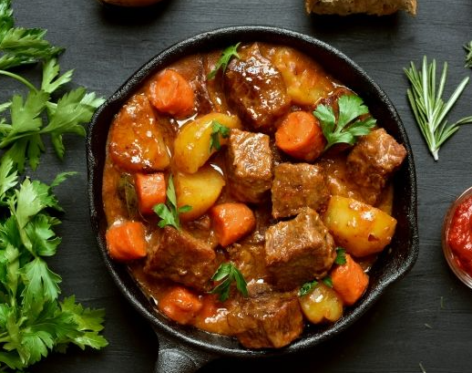 - По-венгерски: добавьте ½ ч. л. копчёной паприки и немного тмина. Подача — с галушками или лапшой.