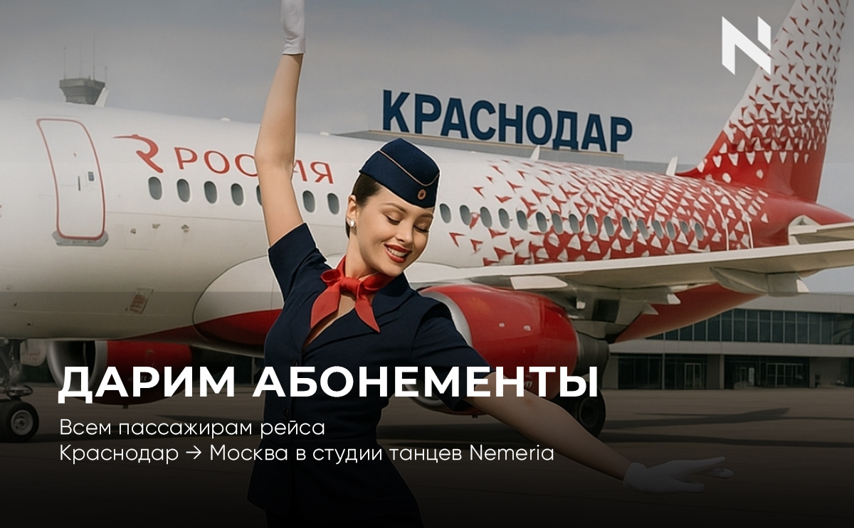 Школа танцев Nemeria ДАРИТ АБОНЕМЕНТЫ тем, кто купил билет из Краснодара в Москву на самолет! Если ты — девушка и ты купила билет на самолет Краснодар → Москва с 22 по 30 сентября, значит, у тебя есть билет, который можно превратить в бесплатный месячный абонемент в танцевальные студии Nemeria. Рейс Краснодар → Москва = Абонемент в студию танцев Nemeria Да, нас тоже уже спрашивали: