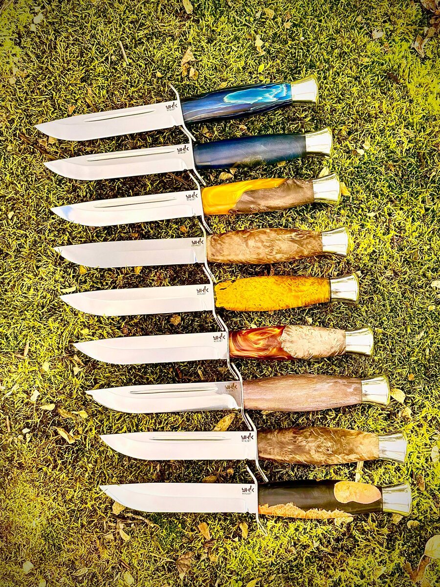 Друзья, вот и пролетели очередные выходные ⚡️ А у нас как всегда, работа кипит 💪🏻 В наличии появились ФИНКИ 🔥🔥🔥 Есть из дамасской стали, из стали 95х18 и стали 110Х18МШД. А Вам какая сталь больше всего нравится?