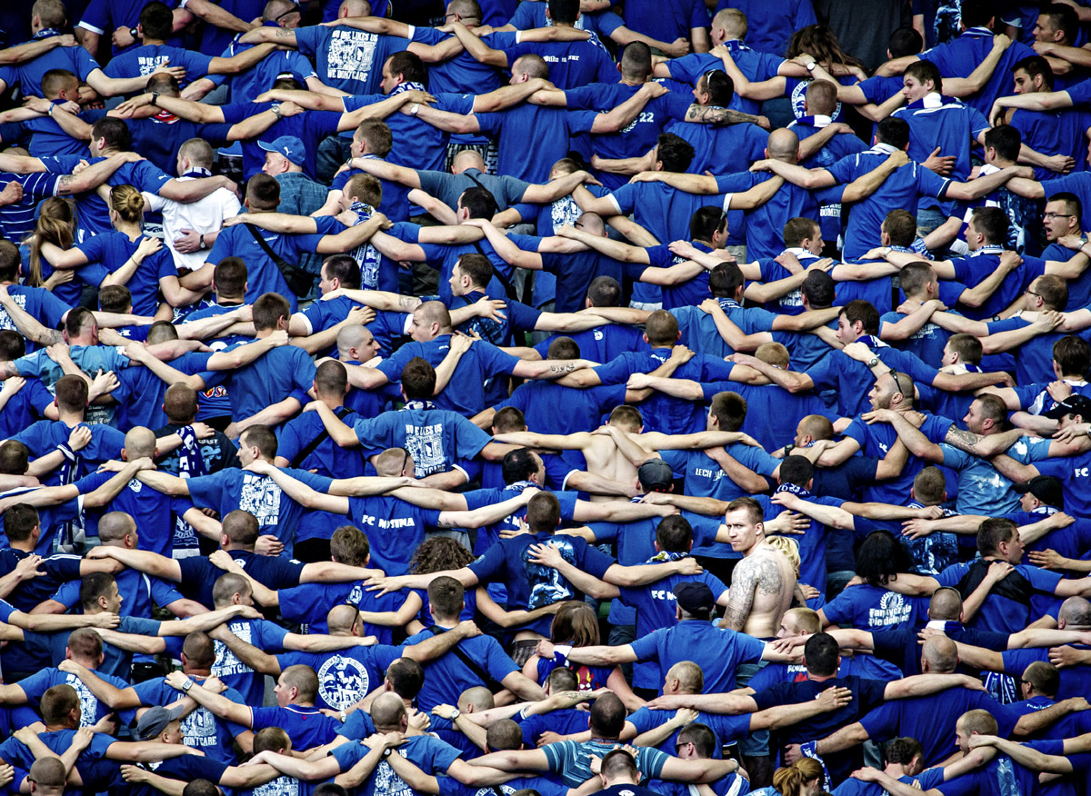 Болельщики «Леха» из Познани поступают гениально просто. Вместо того чтобы смотреть на игру, они… поворачиваются к полю спиной! Обнявшись, они начинают синхронно прыгать, демонстрируя всему стадиону номера любимых игроков на своих спинах. Со стороны это смотрится как внезапная эвакуация или массовый сеанс лечебной физкультуры.