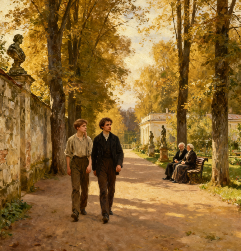 Краткое содержание «Отцы и дети» (И.С. Тургенев): Действие романа происходит в 1859 году. Молодой студент Аркадий Кирсанов возвращается домой с университетским другом Евгением Базаровым — убеждённым нигилистом, отрицающим устои, чувства и искусство. В доме отца Аркадия — старшего Кирсанова — новый гость вызывает раздражение и спор старшего поколения. Базаров пренебрегает традициями, презирает «отцов» за консерватизм, а те не принимают его идей. Аркадий старается следовать за Базаровым, но его позиция менее радикальна. Базаров попадает в светское общество, знакомится с Анной Одинцовой и впервые испытывает сильное чувство — но внутренний конфликт и убеждения мешают ему открыться. Отношения с родителями Базарова полны любви и драматизма, но он не может оставаться с ними надолго: его тянет к деятельности и борьбе. Вскоре Базаров случайно заражается тифом от больного крестьянина, тяжело болеет и умирает, так и не найдя гармонии с миром и собой. Аркадий остаётся на родном поместье, женится н