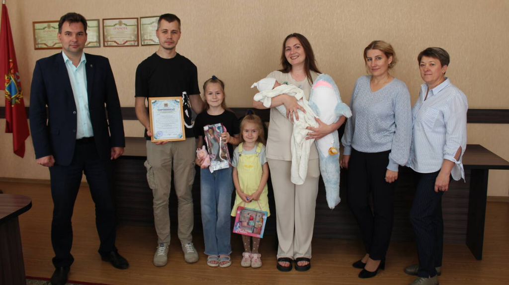 В Суземке Брянщины торжественно вручили сертификат на областной материнский капитал многодетной семье Сугаковых. Документ вручил глава райадминистрации Андрей Матросов. - Пусть этот важный документ станет символом заботы государства о вашей семье и поддержкой ваших планов на будущее. Желаю вам счастья, здоровья, благополучия, - сказал Матросов. Супруги воспитывают дочерей Полину и Женю, а также сына Михаила. Детям подарили игрушки. Сугаковы вместе живут девять лет. Маткапитал на второго ребёнка потратили на улучшение жилищных условий. На эти же цели планируют использовать и сертификат, полученный на третьего ребёнка. Ранее «Брянская Губерния» рассказывала, что ветеранам труда с 1 октября увеличат ежемесячные выплаты. Соответствующий указ подписал губернатор Александр Богомаз. Многодетной семье Сугаковых из Суземки вручили сертификат на областной маткапитал