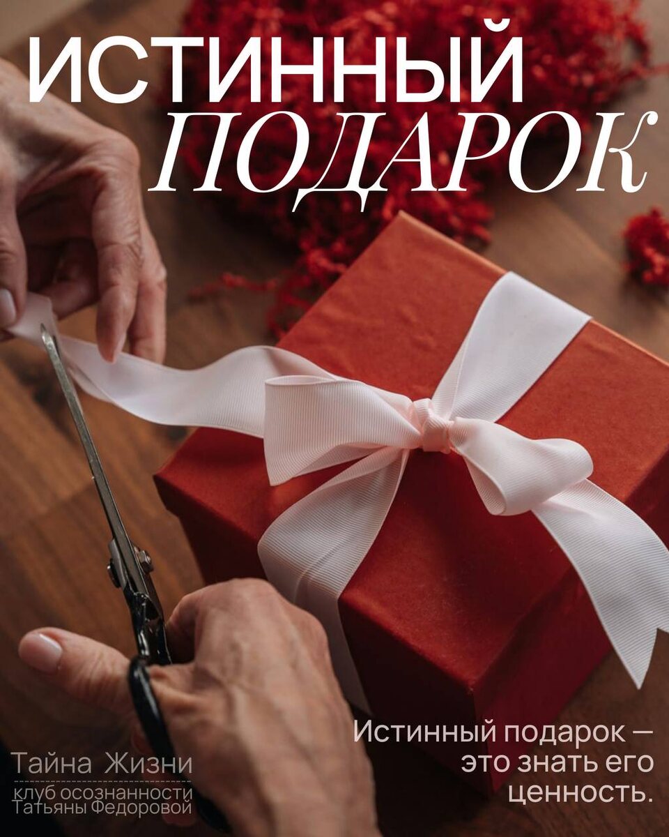 Манипуляция и подарок [Истинный подарок] Нас учили: настоящий подарок - это «ничего не ждать взамен». А если перевернуть? Истинный подарок - это знать его ценность. Знать, что я вложил. И поблагодарить себя за этот выбор. ❓А ты благодаришь себя, когда даришь? Или сразу списываешь: «мелочь, пустяк»?