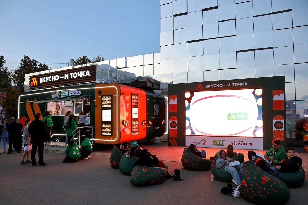 «Вкусно — и точка» теперь стритфуд! На слёте Всемирного фестиваля молодёжи в Нижнем Новгороде Вкусноточка поставила неоновый фудтрак в стиле