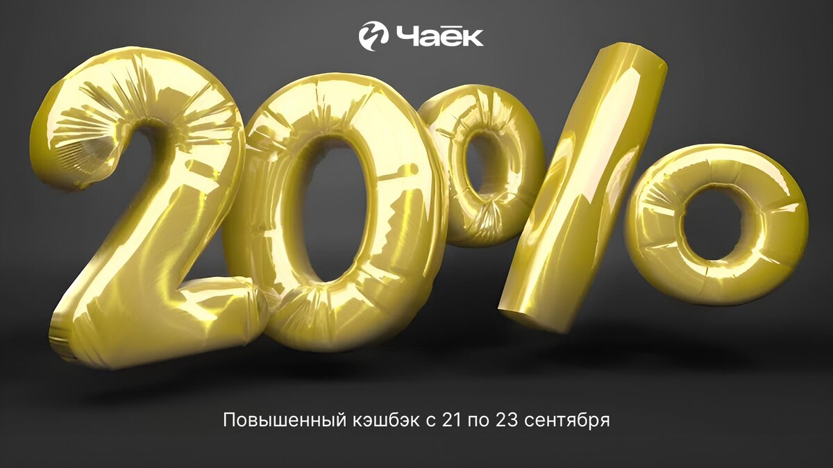 Повышенный кэшбэк с 21 по 23 сентября Дарим каждому покупателю повышенный кэшбэк 20 % и новый стикерпак в честь седьмого Дня рождения проекта «ЧАЁК». Ещё дарим ко всем покупкам от 7 000 ₽ эксклюзивный чай, который мы приберегли специально к этому дню. Привезли для вас кое-что очень интересное! Подробности 1. Повышенный кэшбэк действует на товары по базовой цене; 2. Повышенный кэшбэк начисляется бонусами; 3. Промокоды на время акции неактивны; 4. Бонусы активны в течение полугода с момента их начисления. #акция@chaekshop
