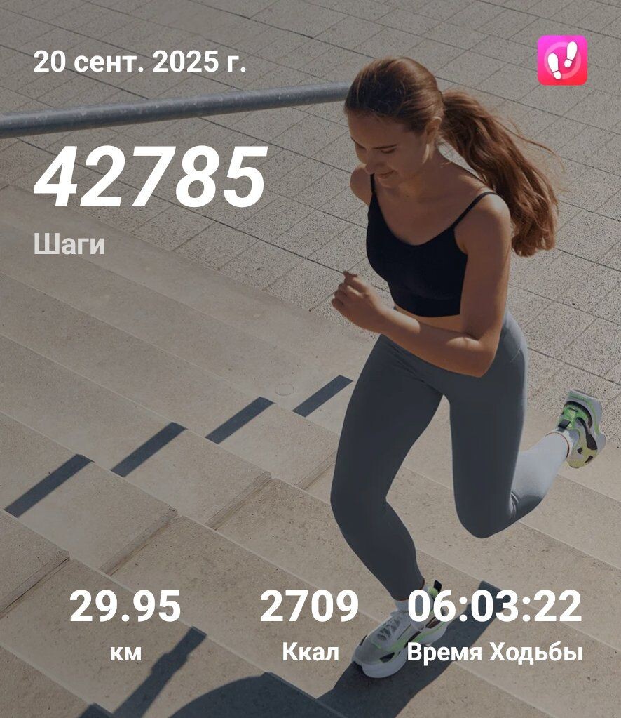 Всем привет! Я работаю вожатой, поэтому часто нахожусь вне дома. Ем вне дома. Тренируюсь тоже вне дома. О своих тренировках я пишу подробно в телеграм. И если вы ещё не подписаны, очень жду 🤗 Вот недавно была одна из самых крутых моих пробежек. Сейчас я тоже в лагере. Поэтому, еженедельной статьи о весе не будет. Взвешусь по приезду в октябре. Расскажу лучше о текущей активности и питании. В лагере у меня всегда большая активность. Но в этот раз я кажется переплюнула сама себя 😃 Мы здесь очень много ходим, недавно я обновила рекорд за последние несколько лет. Прошла больше 40.000 шагов и 30 км. Это не было сложно, потому что день был такой. Нужно было ходить больше обычного. Плюс ноги привыкли к нагрузкам. Я нахожусь в Краснодарском крае в Орленке и здесь постоянные горки и спуски. Натренировала уже икры. Больше 10 раз в день я хожу вот по таким ступенькам. Туда, обратно. Туда и обратно 💪 В среднем за неделю сейчас 26.000 шагов и 18 км. По возможности провожу тренировки