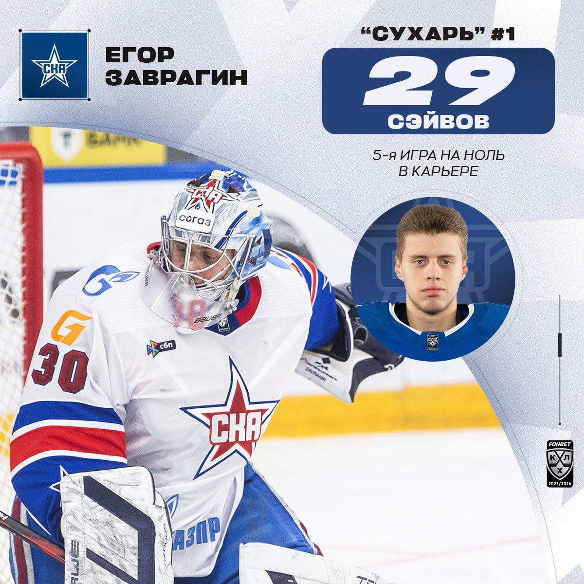 ⭐️ Егор Заврагин обеспечил для СКА первую сухую победу в сезоне!