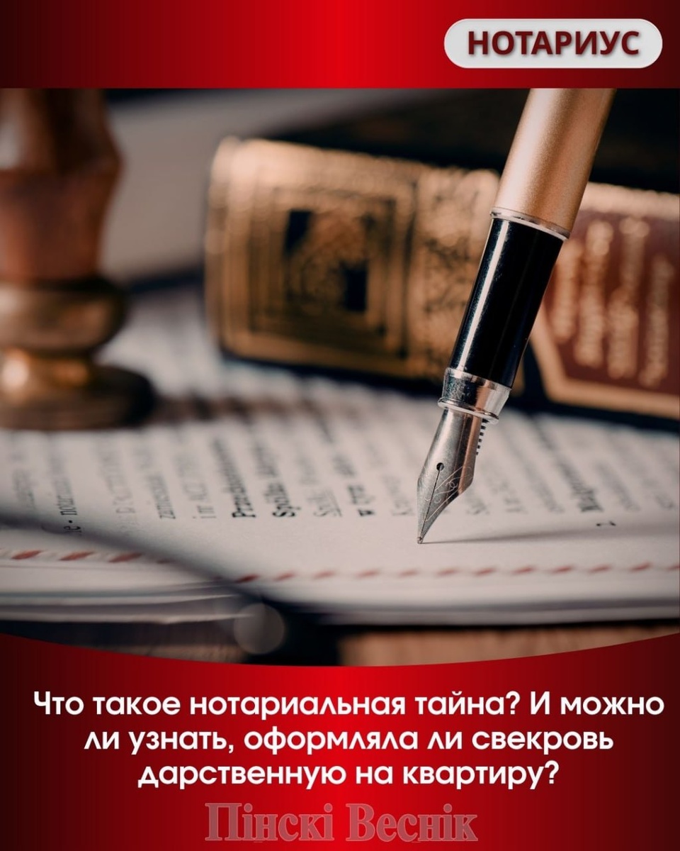 ✅ Что такое нотариальная тайна? И можно ли узнать, оформляла ли свекровь дарственную на квартиру? Отвечает нотариус Елена Коваль: Нотариальная тайна — это все сведения, которые становятся известны нотариусу при обращении клиента. Разглашать их запрещено законом. Можно ли узнать, обращалась ли ваша свекровь для оформления дарственной? 👆 Нет. Эта информация является нотариальной тайной. Нотариус не имеет права сообщать такие данные третьим лицам. Кому могут быть предоставлены сведения? Только самим участникам сделки, их правопреемникам или уполномоченным органам (суд, прокуратура, налоговая и т.д.). Что не является тайной? ✅ Информация о доверенностях (ФИО, дата, нотариус). ✅Данные об открытии наследственного дела (ФИО наследодателя, дата смерти, нотариус). Эти сведения можно найти на сайте Белорусской нотариальной палаты. #нотариус #право #юридическаяпомощь #беларусь 📍📍@Пинский Вестник ЮТУБ | САЙТ| ИНСТ | ВК | ОК | ФЕ | Прислать новость