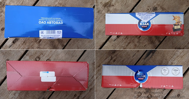 Сегодня рассмотрим комплект шаровых опор ВАЗ-2101-07 усиленные с крепежом "БЗАК-Профи" от Белебеевский завод Автокомплект. Опоры упакованы в фирменную глянцевую картонную коробку. В месте открытия наклеена бумажная этикетка, разрываемая при вскрытии, на ней указаны: наименование изделия на русском и английском языках, заводской артикул изделия, штрих-код, значок Таможенного союза и эмблема завода. На торцах коробки указаны местонахождение и контактные данные производителя, его сертификация, на дне коробки - дата упаковки изделия. Внутри упаковки находится гарантийный талон со штампом ОТК, четыре шаровые опоры, внешне ничем не отличающиеся друг от друга, четыре комплекта крепежа в герметичных полиэтиленовых пакетах. Внутри упаковки никаких обозначений и маркировок не обнаружено. Судя по маркировке, крепеж производства АО "БелЗАН". На каждую опору наклеена круглая голограмма, под прямым углом отливающая серебристым цветом, а под косым переливается всеми цветами радуги. Корпус шаровых опо
