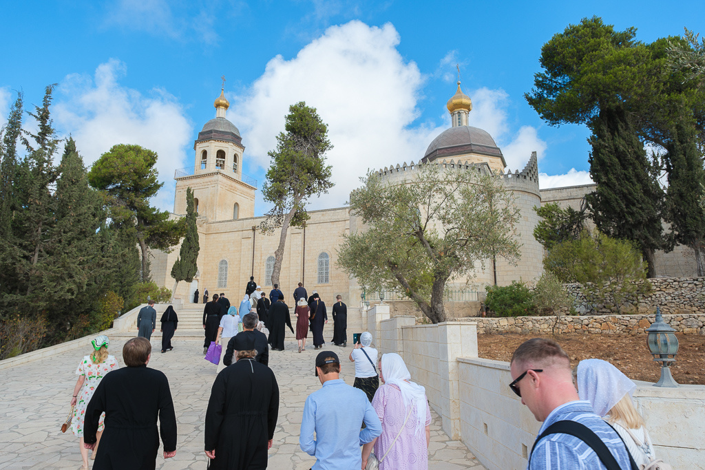 На территории обители сохранились гробницы евангельских времен, паломники осмотрели их. Протоиерей Димитрий Юревич рассказал, что примерно так же выглядела гробница Иисуса Христа. В кувуклии храма Гроба Господня видно только ложе: во времена царицы Елены остальная часть гробницы была стесана, а сверху построена кувуклия. Из современных исследований по библейской археологии известно, что рядом с Голгофой находилась заброшенная каменоломня, где во времена Спасителя устраивали гробницы.