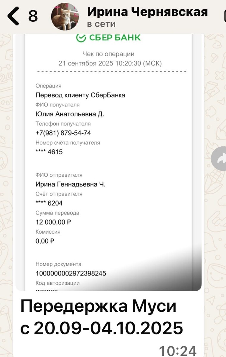 Оплачена передержка Муси