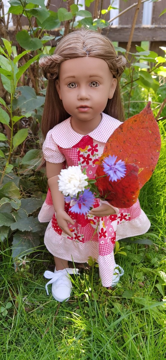 Я даже не ожидала такого резонанса от моей идеи: в течение всей недели на разных каналах увлеченные творческие люди выкладывали фотографии со своими любимыми куклами в декорациях осени, по-разному обыграв сам обязательный объект флэшмоба - букет. Куклы были самые разнообразные - малышки бабольки, утонченные барби, яркие веснянки, паолки... всех не перечислить! Все - в нарядах, все - ухоженные и любимые! Я сначала хотела оставить в этой статье ссылки на блоги моих дорогих участниц, но побоялась кого-то пропустить, обидеть. Поэтому - еще одна идея: в комментариях под этой статьей напишите что-нибудь типа: "Я участвовала", или просто "Участник", и все желающие смогут перейти на ваши каналы и полюбоваться на осенние фото куколок уже на ваших страничках. Можно ссылки прикрепить на конкретную статью - но это на ваше усмотрение. А со мной гуляла по даче и насобирала маленький милый букетик Бланка Готц. Ей так понравились васильки и маленькая белая астрочка, что она, не раздумывая, соединила и