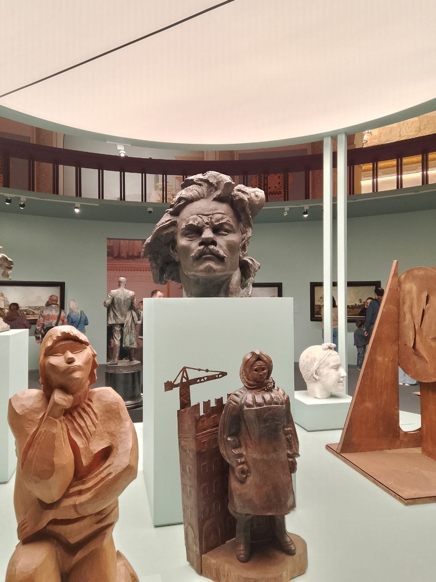 5.Образ Москвы в русском искусстве. Выставка в центральном корпусе ВДНХ. Выставка красивая, богатая. Питерцы привезли её из Государственного Русского музея. В этом сообщении (завершающем) немного скульптуры и известный портрет Максима Горького, силуэт которого по-моему использовался в логотипе-эмблеме-маскоте одной из ведущих киностудий СССР.