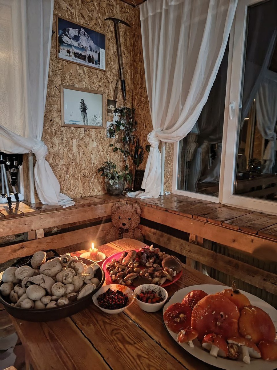Сегодняшний день запомнится первым снегом в ботинках, щедрым уловом из грибов и ягод, и фирменной курицей в исполнении Сергея