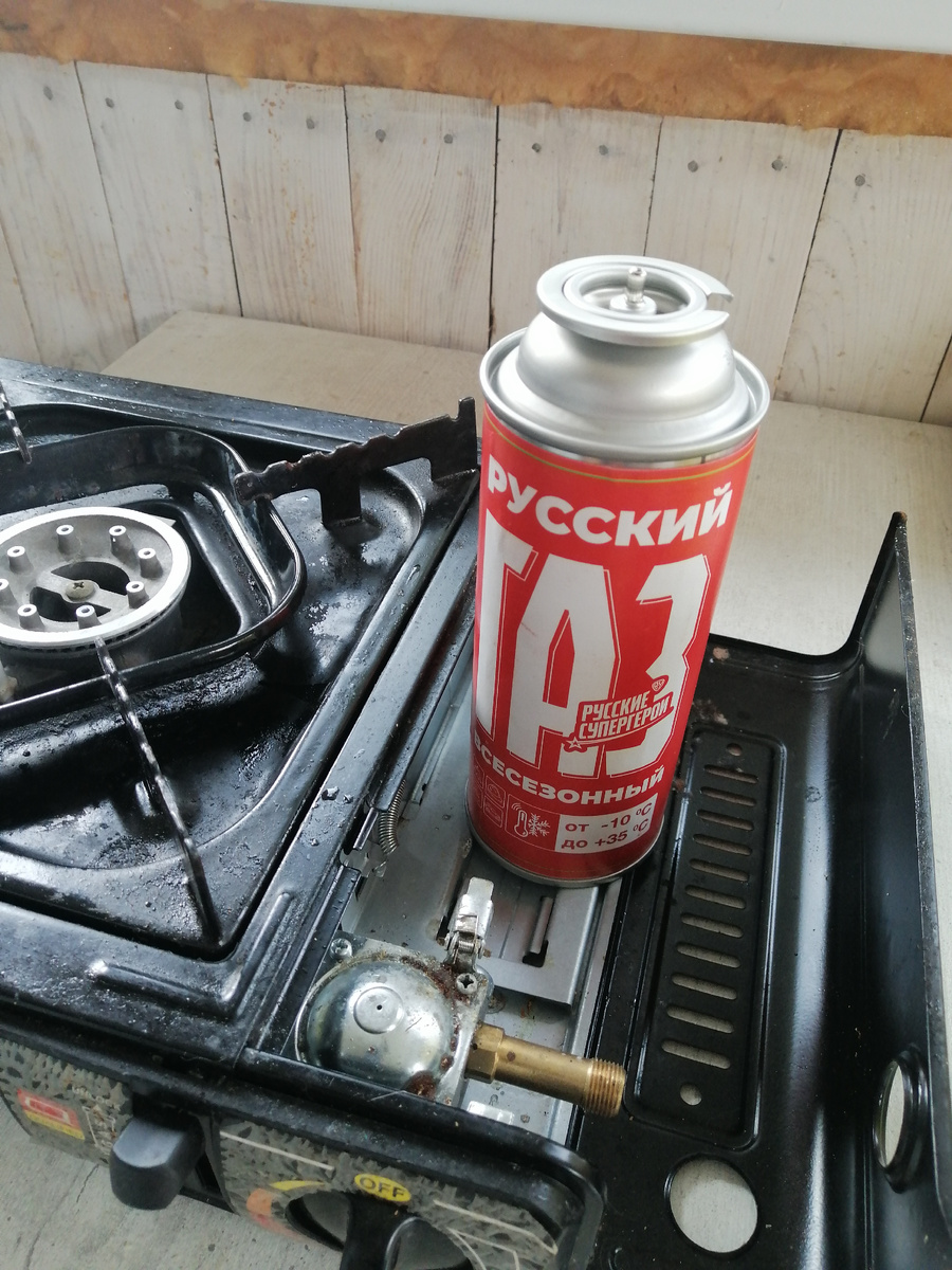 Этот вот баллончик, и не только он, но и его собратья, бракус вульгарис, то есть, обыкновенный брак. Сегодня на ваш суд представлен брак того, чего у нас в России больше, чем во всём остальном мире. Газовый брак. Под названием, смотрите на фото: "Русские супергерои" (О как! Супергерои! Да ещё и русские!) всесезонный". От - 10 до + 35. Ага! Универсальный, говорите? Точно, универсальный. Он универсально не хочет гореть.